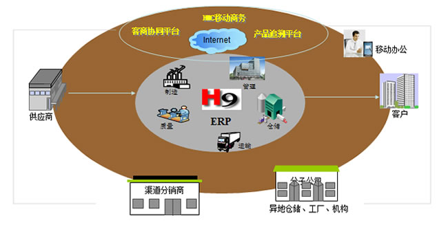 宏讯 H9精益制造整体解决方案,提供企业全面的IT规划,IT系统整合,行业规范及管理模型提供,管理领域涵盖协同管理、CRM、售后服务、计划管理、供应链管理、生产制造、MES车间现场、财务结算、成本费用、产品安全追溯、全面质量ISO/GMP/GSP规范、集团化多组织多公司管理、KPI、全程条码、企业EAI应用集成、企业自定义开发、客户供应商协同管理、手机移动ERP,帮企业打造全方位的基础资源、产业互联、移动互联管理平台。