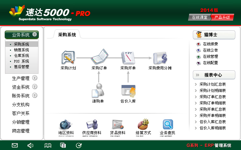 《速达5000G-PRO工业版》作为ERP管理系统,特别适合中型企业使用。系统全面实现供应链业务管理、生产管理、资金管理、财务管理、客户关系管理、异地分销、远程配送、多机构集团化管理。系统通过强化业务流程控制,多级审批管理,有效地帮助企业实现业务管理、生产管理、财务管理的制度化。 ...